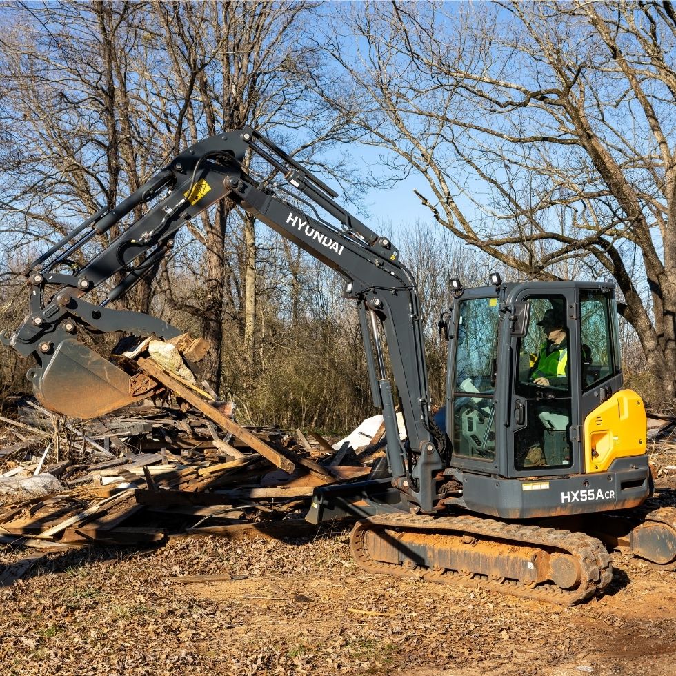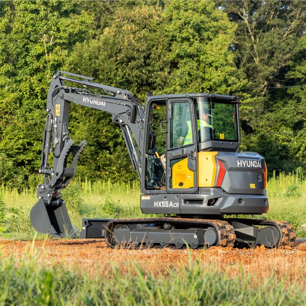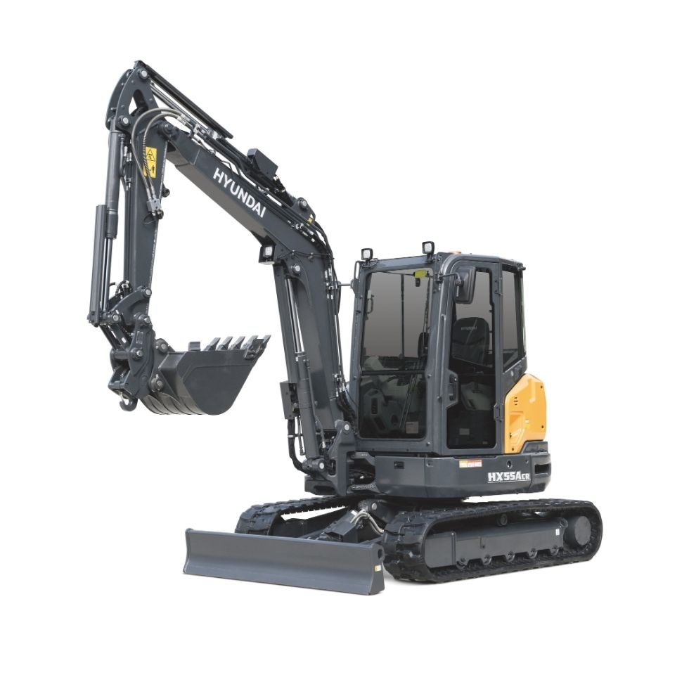La Hyundai HX55ACR est une pelle hydraulique compacte équipée d’un moteur diesel conforme à la norme Tier 4 Final à faibles émissions. Elle offre un fonctionnement efficace et une puissance accrue.